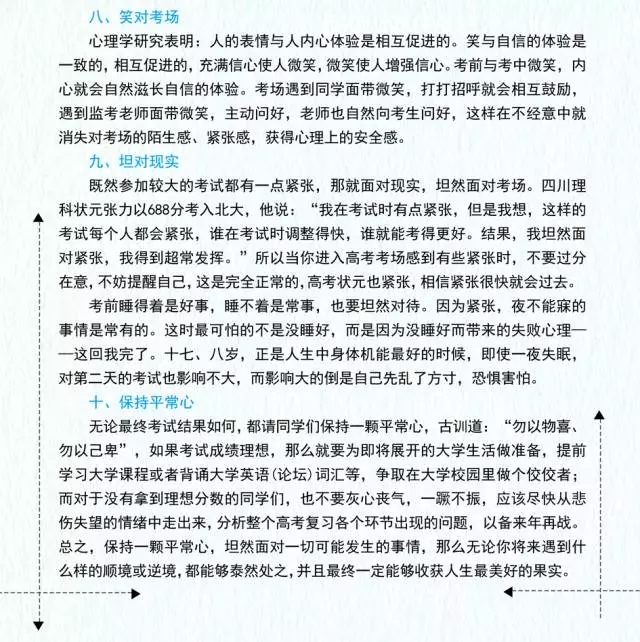 前一晚睡眠質(zhì)量好不好;早飯吃得是否舒服;去考場的路上順利與否這些都多多少少影響了當(dāng)天的考試心情。在之前做好準(zhǔn)備工作,讓后勤保障給你一個舒心、愉快的考試狀態(tài)。